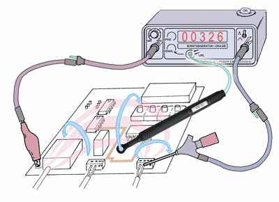 During burst testing with the S21 sensor which is installed on the assembly, electical signals from the assembly are transformed into optical signals. The pulse rate counter of SGZ 21 detects these optical signals. Futhermore, the MS 02 magnetic field probe can measure burst magnetic fields on the assembly and can transform them into optical signals during the test. This measuring procedure is suitable for signal monitoring during the burst tests or before and after measurements for controlling the EMC steps.