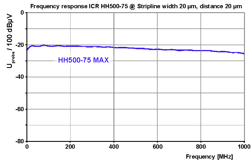 Probes named with ICR HVxxx-27/-75 are characterized by a higher gain in the lower frequency range. (See frequency responses of HH near-field microprobes at the bottom.)